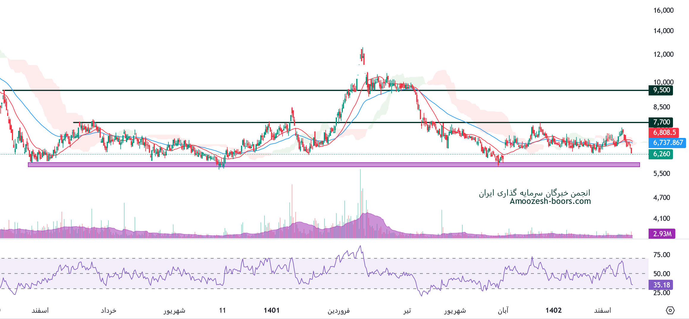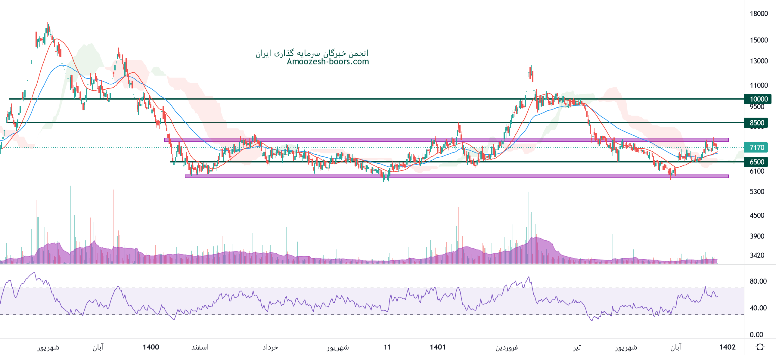 در صورت متعادل شدن جو بازار قیمت پتانسیل برگشت داشته که در این صورت مقاومت های آپ به ترتیب 7700 و 9500 ریال در نظر گرفته خواهند شد.