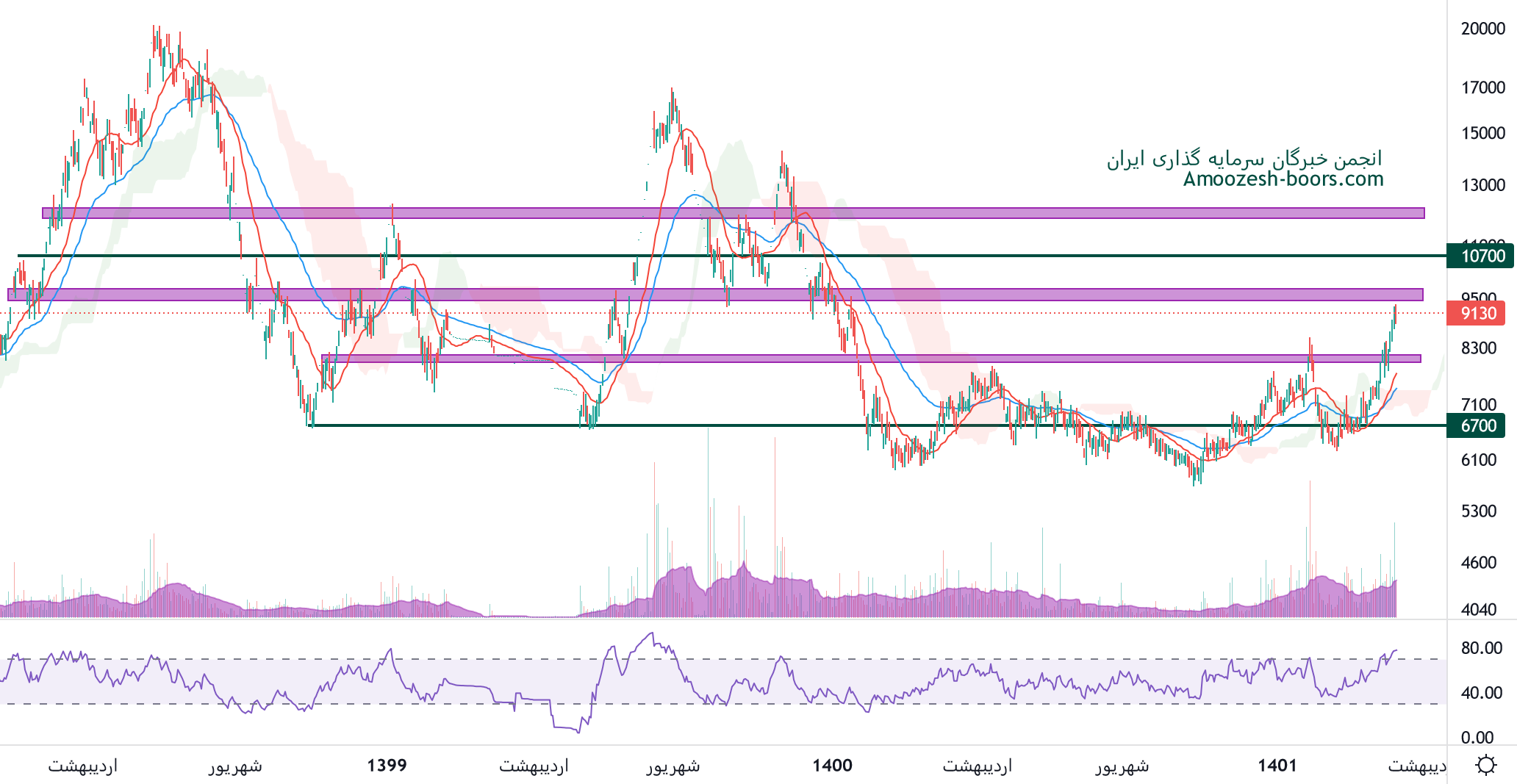 نماد آپ به محدوده مقاومتی 9500 ریال نزدیک شده، در صورت واکنش منفی به این محدوده، اولین حمایت سهم 8000 ریال در نظر گرفته خواهد شد، همچنین در صورت ادامه دار شدن فشار تقاضا و عبور از این محدوده مقاومتی، حرکت سهم آپ تا 10700 ریال و بعد از آن 12000 ریال محتمل میباشد.