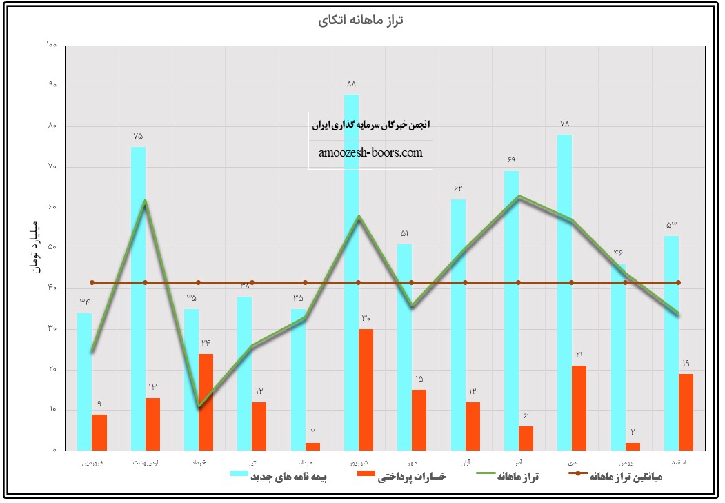 لذا با توجه به آمار مذکور تراز اسفند ماه اتکای با 23% کاهش در مقایسه با ماه گذشته به مثبت 34 میلیارد تومان رسیده است.