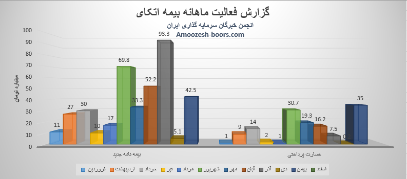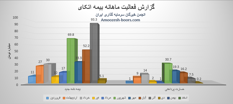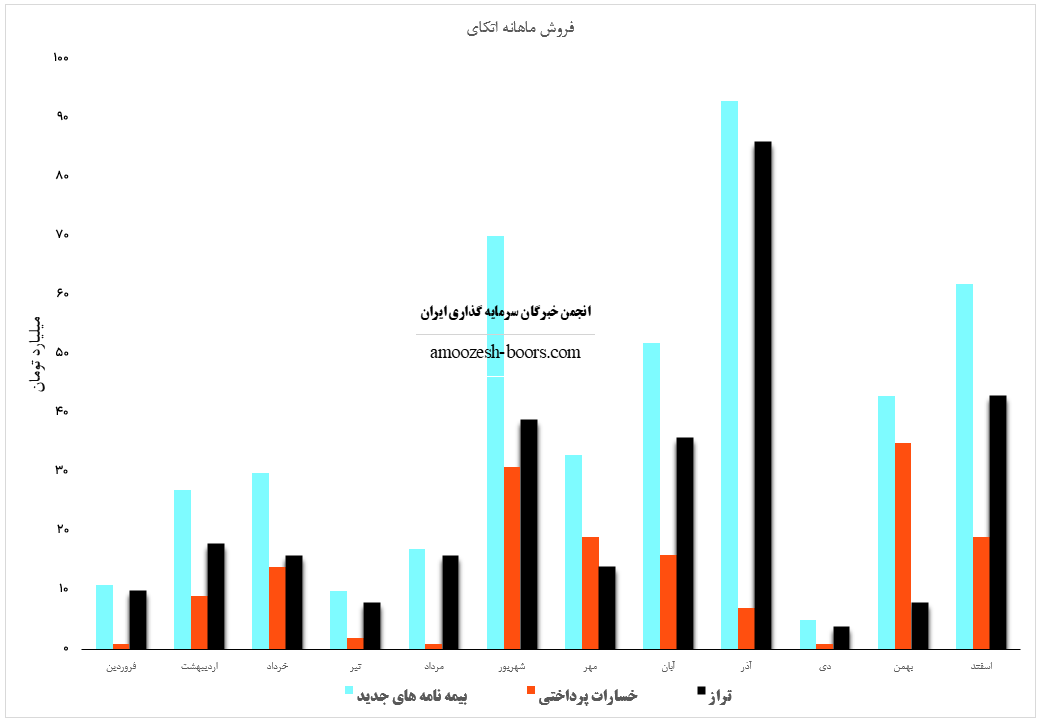 اتکای که در بهمن ماه 42.5 میلیارد تومان از محل بیمه نامه جدید دریافت نمود، معادل 35 میلیارد تومان نیر بایت خسارات پرداختی داشت و تراز خود را در بهمن ماه مثبت 21% گزارش نمود.