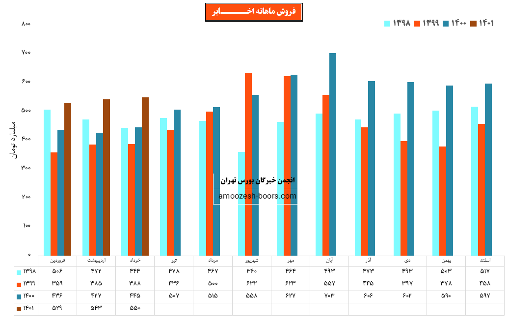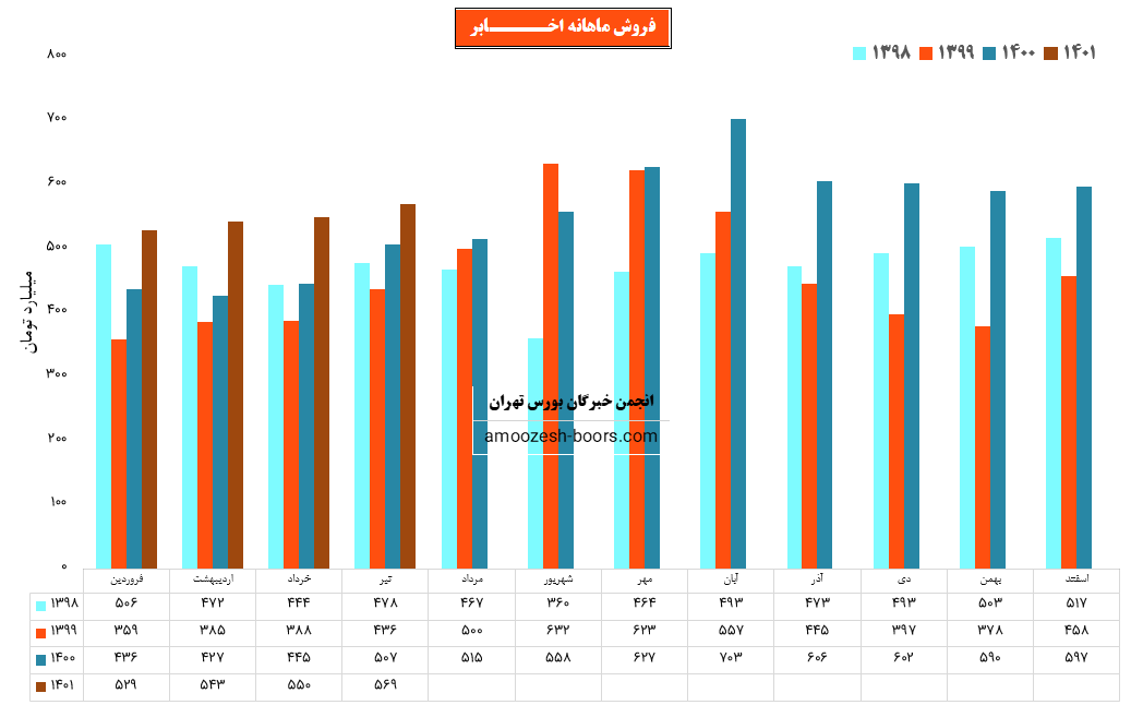 فروش نماد اخابر: 37160 میلیارد تومان که نسبت به دوره مشابه گذشته 22% افزایش یافته است.