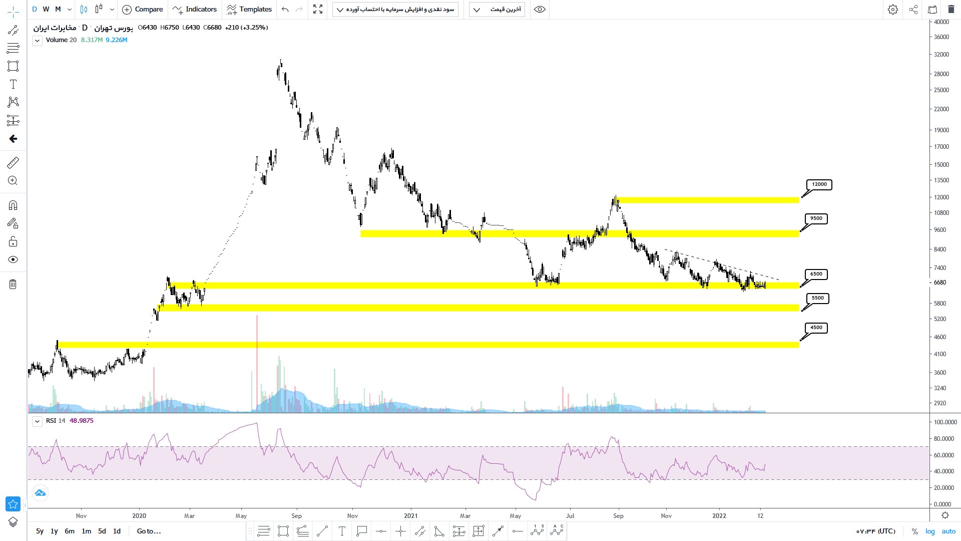 دسترسی کامل و به روز به این بخش از تحلیل های 300 سهم معروف بازار، مختص اعضای VIP میباشد اما چکیده این مطالب را می توانید به صورت رایگان در کانال تلگرام ما داشته باشید.