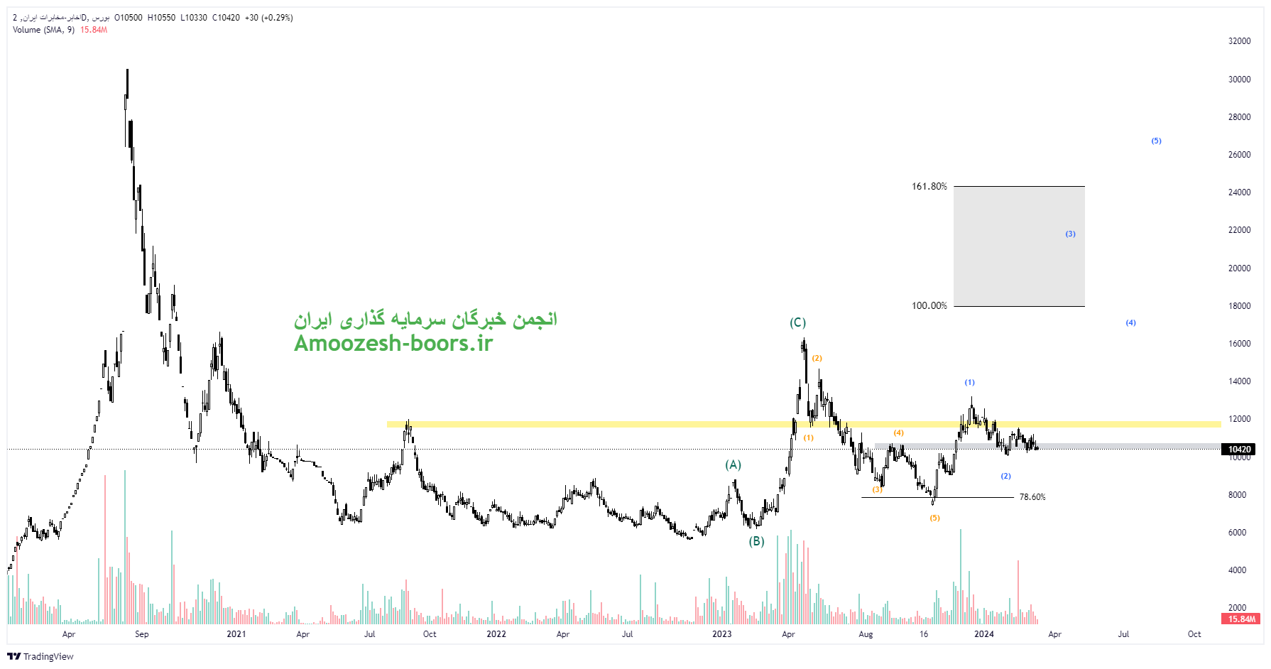 سهم اخابر با قرارگیری بر روی محدوده حمایتی 10000 ریال در صورت ایجاد تقاضا در کلیت بازار پتانسیل تداوم حرکت صعودی تا مقاومتهای نواحی ۱۸۰۰۰ و ۲۴۰۰۰ ریال را در میان مدت دارد. اما در صورت برگشت مجدد و ایجاد فشار عرضه در کلیت بازار مهمترین حمایت سهم اخابر ناحیه ۷۸۰۰ ریال در نظر گرفته خواهد شد.