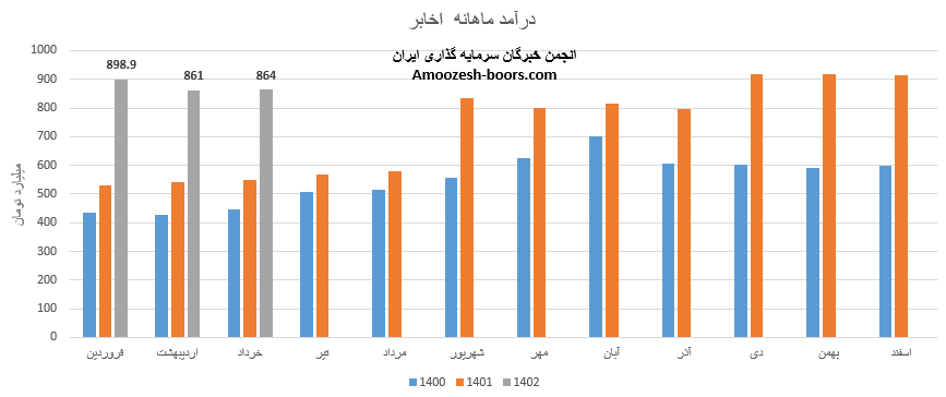 نماد اخابر که ماهانه درآمدی خطی را شناسایی میکند با افت 1 درصدی نسبت به ماه گذشته و متوسط ماهانه به فروش 850.9 میلیارد تومانی دست یافته است، فروش سهم اخابر نسبت به مرداد ماه سال گذشته 46% افزایش داشته است.