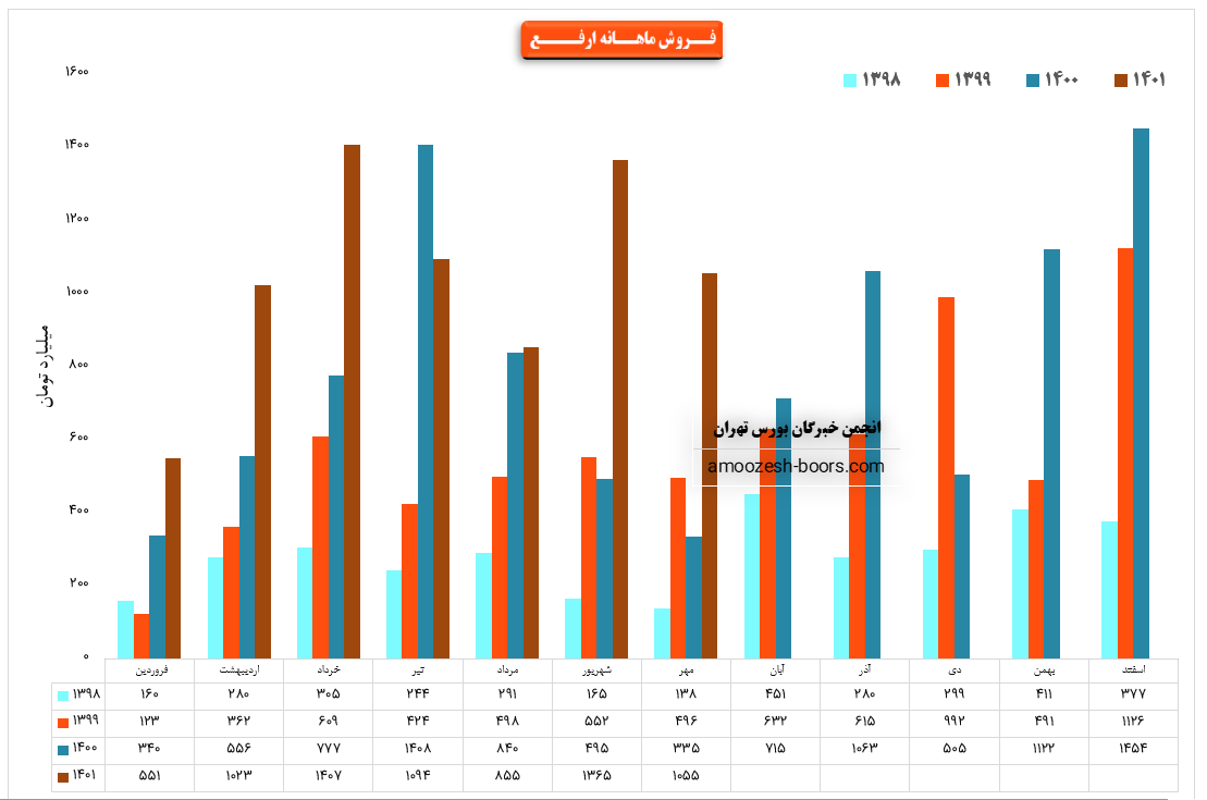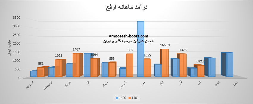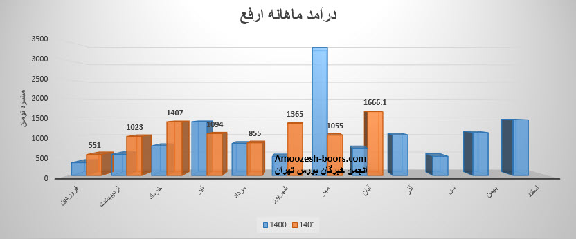 در موجوع سهم ارفع در طی عملکرد 8 ماهه مبلغ 90,178,757 میلیون ریال درآمد فروش داشته است که نسبت به مدت مشابه سال قبل 65% رشد داشته استو تا بحال موفق شده 94 درصد از بودجه سال گذشتهرا محقق نماید .
