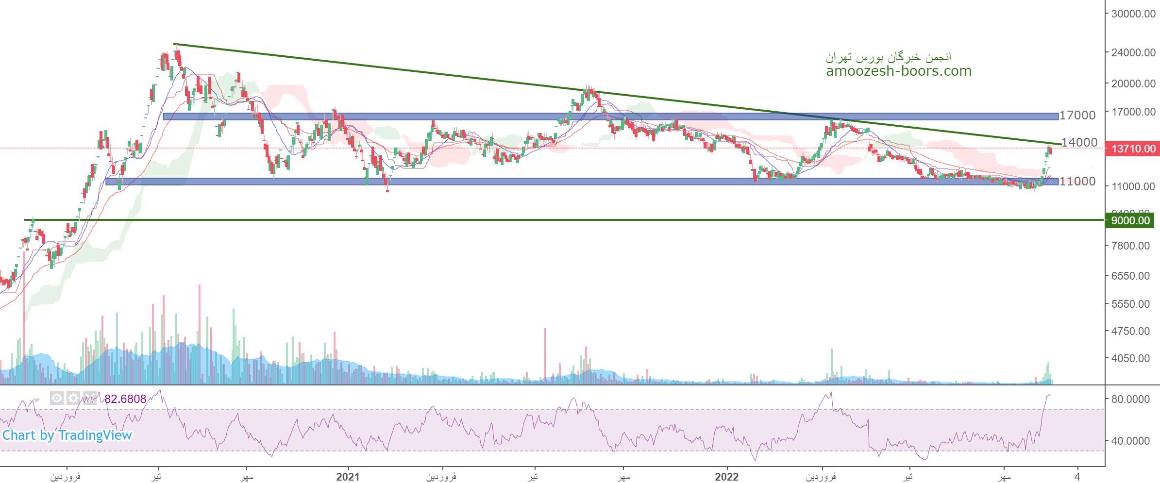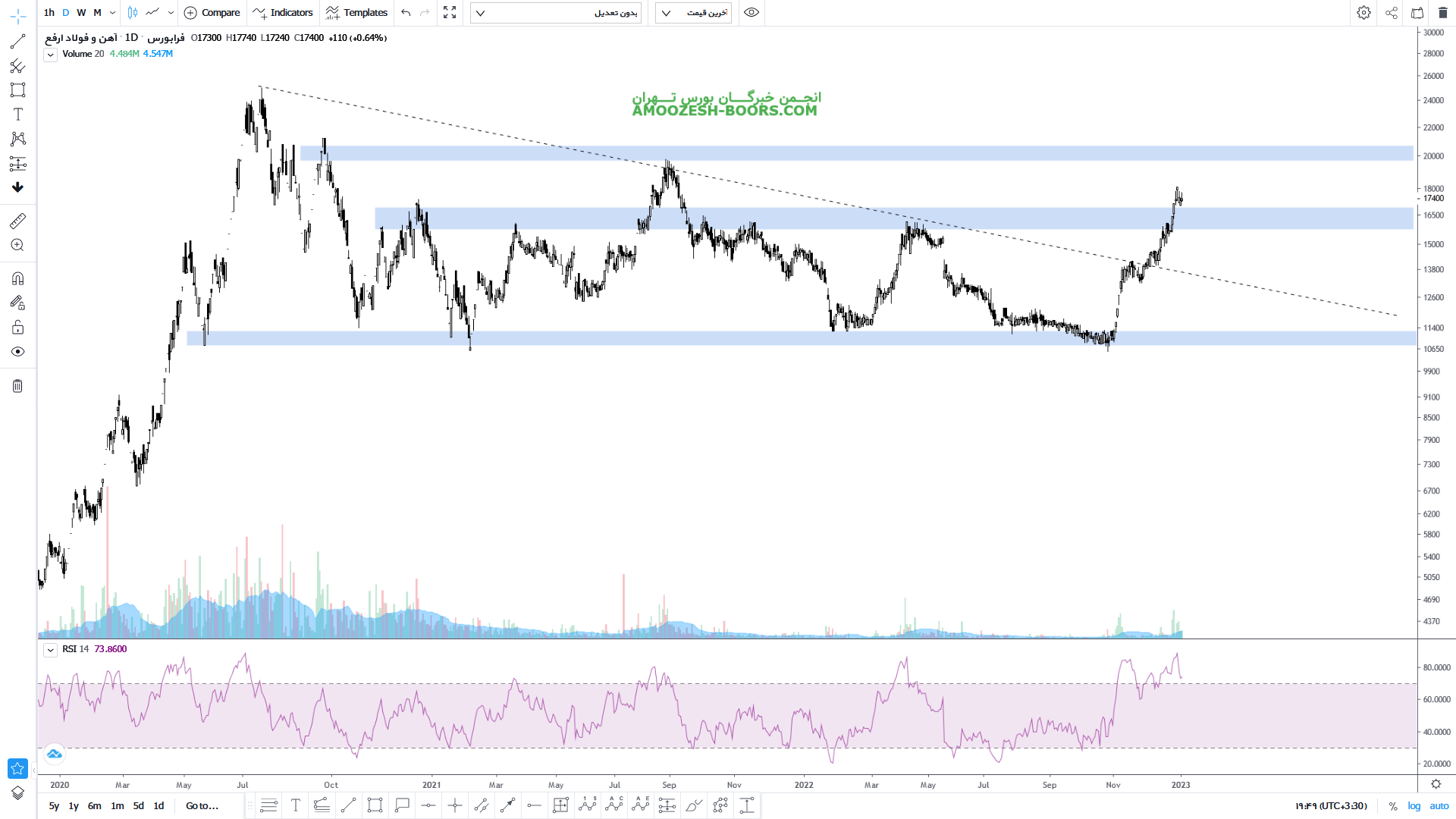 ارفع بعد از حرکت صعودی خوب خود، به مقاومت 14000 ریال رسیده است، در صورت عبور از این مقاومت حرکت سهم تا 17000 ریال محتمل خواهد بود، همچنین در صورت ورود سهم به فاز اصلاحی، اولین حمایت سهم 11000 ریال در نظر گرفته خواهد شد.