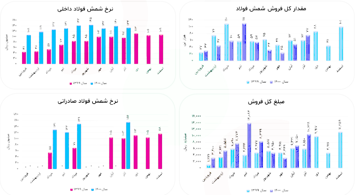 نرخ فروش شمش در آبان 14 میلیون تومان بوده که نسبت به مهر حدود 7 درصد افزایش داشته است.