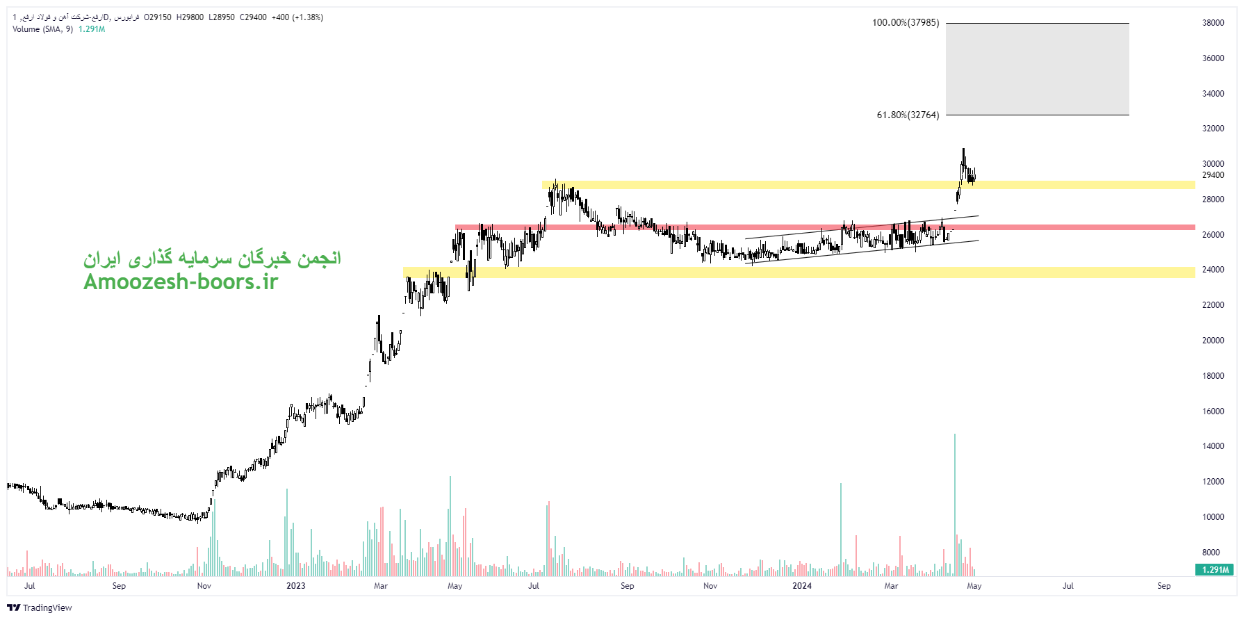 سهم ارفع پس از خروج از کانال صعودی خود با شکست مقاومت مهم ناحیه 29000 ریال، در حال پولبک و آماده سازی برای تداوم رشد خود تا نواحی ۳۳۰۰۰ ریال و ۳۸۰۰۰ ریال میباشد. لذا در صورت ایجاد فشار عرضه در سهم و عدم تایید پولبک، نزدیکترین حمایت به سهم ارفع ناحیه ۲۶۰۰۰ ریال در نظر گرفته خواهد شد.