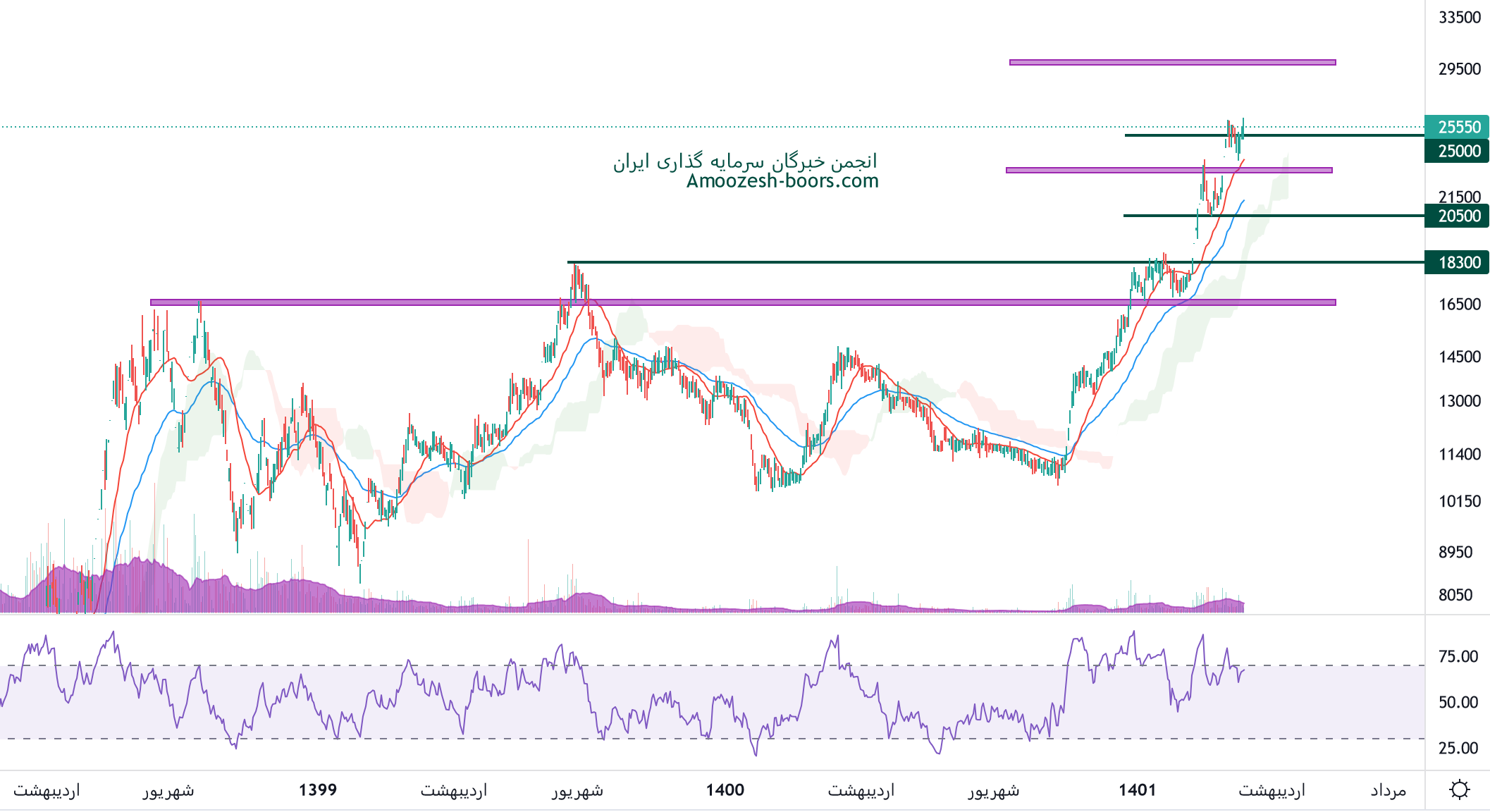 نماد ارفع درگیر محدوده مقاومتی 25000 ریالی میباشد، در صورت حفظ تداوم روند صعودی و عبور از این مقاومت، مقاومت بعدی 30000 ریال میباشد، همچنین در صورت بروز نشانه های اصلاح، اولین حمایت 23000 ریال در نظر گرفته خواهد شد.
