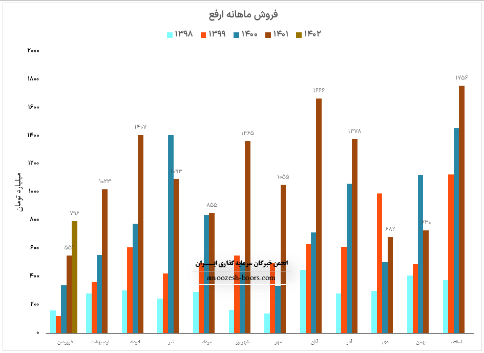 نماد ارفع (شرکت آهن و فولاد ارفع) در فروردین ماه سال 1402 حدود مبلغ 796 میلیارد تومان درآمد داشته که این میزان در مقایسه با ماه گذشته 55% کاهش و همچنین در مقایسه با مدت مشابه سال گذشته 44% رشد درآمد پیدا کرده است.