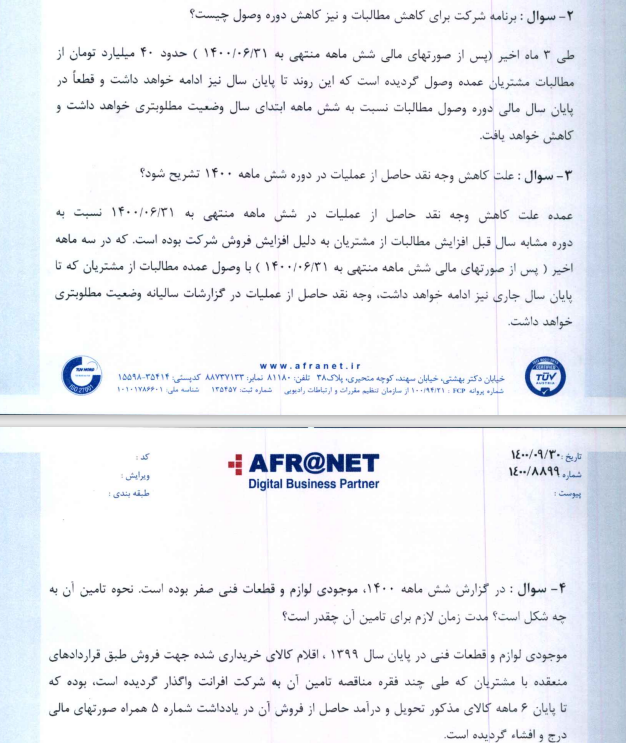فروش شرکت: 141 میلیارد تومان که نسبت به دوره مشابه گذشته 50% افزایش یافته است.