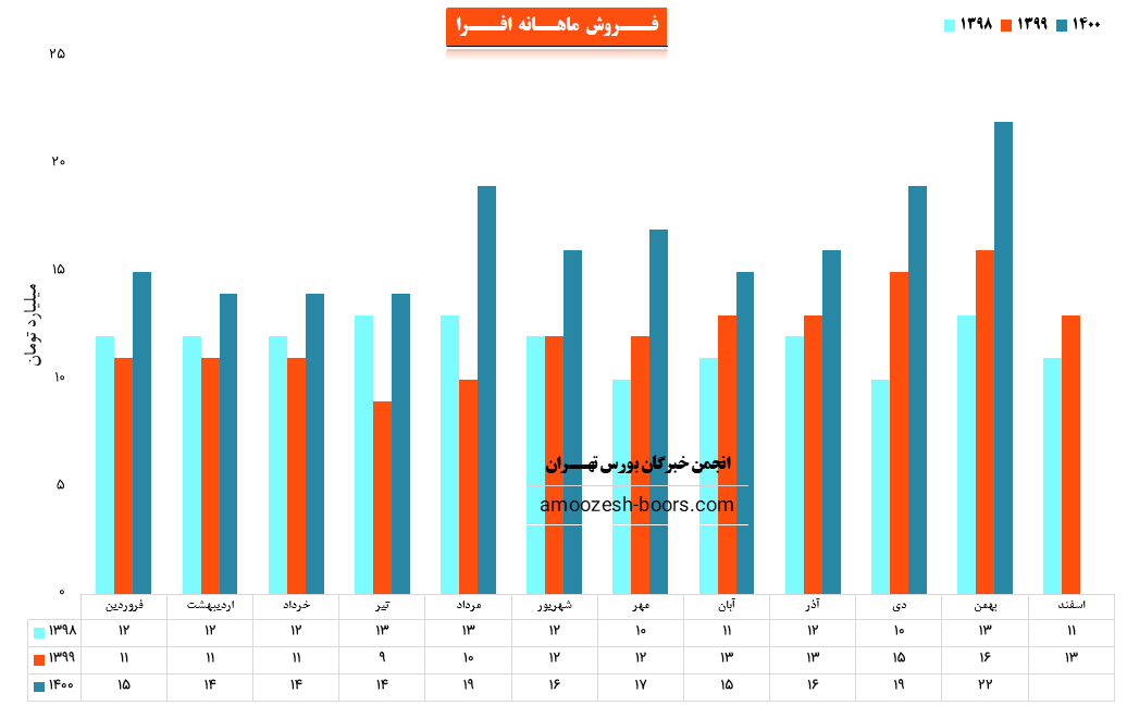 شرکت افرانت با نماد افرا در بهمن ماه ۱۴۰۰ مبلغ ۲۲ میلیارد تومان درآمد داشته که این میزان در مقایسه با ماه گذشته ۱۶ % و همچنین در مقایسه با مدت مشابه سال گذشته ۳۸ % رشد درآمد پیدا کرده است.