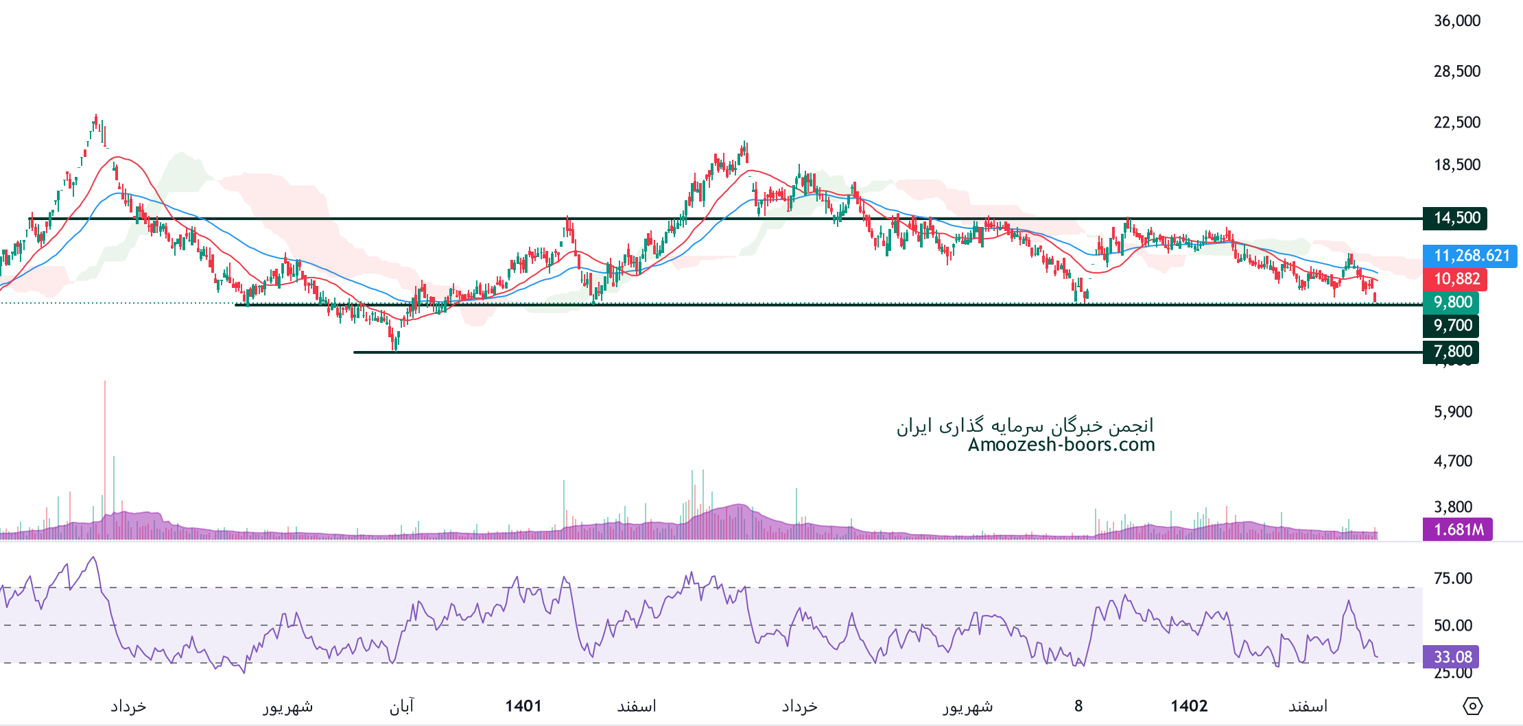 در صورت متعادل شدن جو بازار قیمت پتانسیل برگشت داشته که در این صورت اولین مقاومت افرا 14500 ریال خواهد بود.