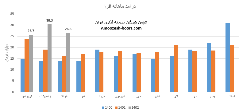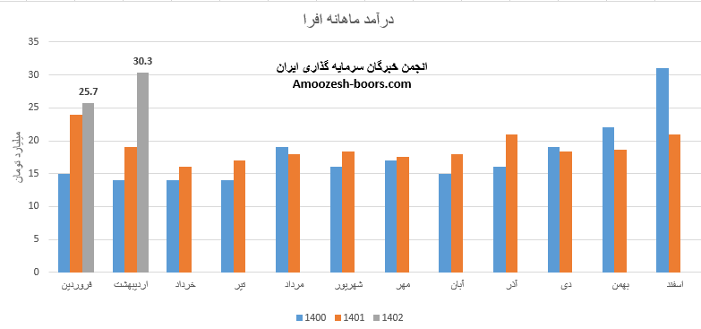 درآمد نماد افرا طی دوره 1 ماهه به 26.5 میلیارد تومان رسیده که نسبت به مدت مشابه افزایش 66 درصدی داشته اما نسبت به ماه گذشته و متوسط ماهانه به ترتیب با افت 13 و 5 درصدی مواجه بوده است، مجموع عملکرد 3 ماهه سهم افرا بهبود 40 درصدی نسبت به مدت مشابه داشته و طی این مدت 36% از کل درآمد سال گذشته تحقق یافته است.