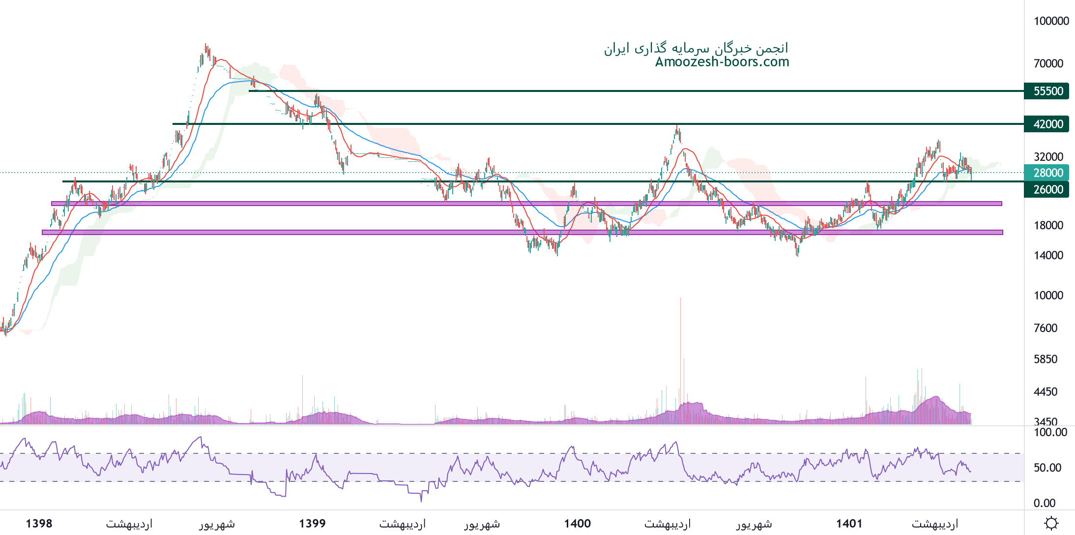 نماد افرا در حال نوسان روی سطح حمایتی 26000 ریال میباشد، در صورت تثبیت قیمت و ایجاد کندل های صعودی، حرکت سهم افرا تا 42000 ریال محتمل خواهد بود، همچنین در صورت ادامه دار شدن نزول و از دست رفتن سطح حمایت افرا که ذکر کردیم، حمایت بعدی محدوده 21000 ریال خواهد بود.