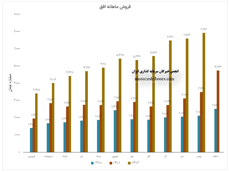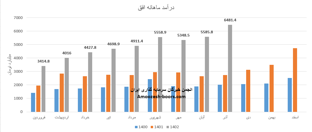 فروش آذر ماه سال 1402 سهم افق 6481.4 میلیارد تومان گزارش شده است، تغییرات درآمدی افق به شرح زیر میباشد: