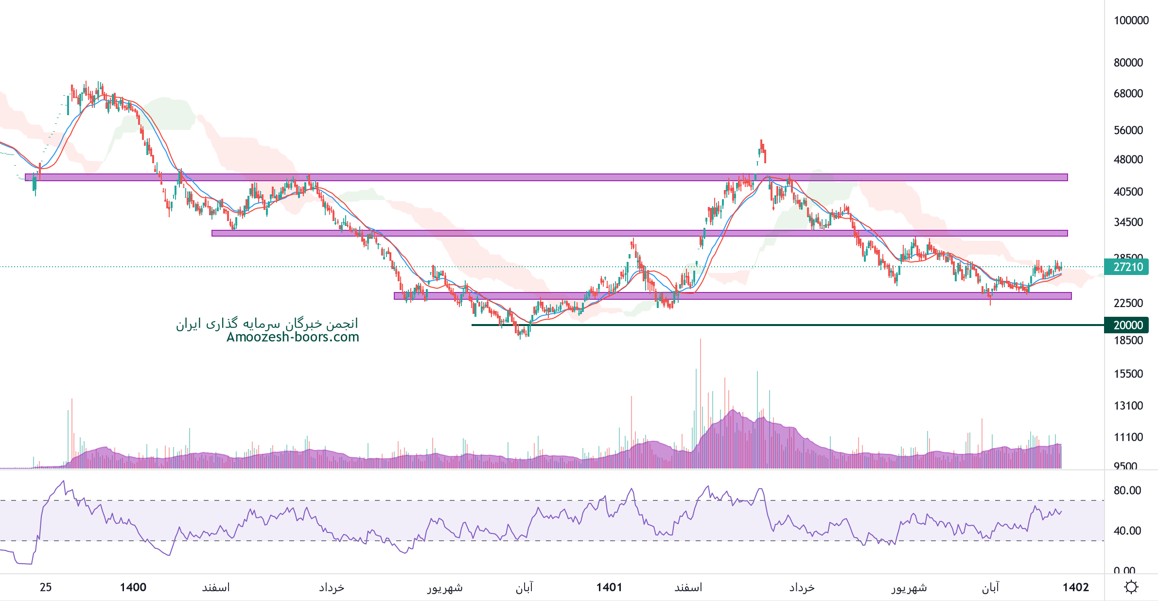 تحلیل تکنیکال سهم انرژی نشان میدهد که قیمت در محدوده مقاومتی 32000 ریال و حمایتی 23000 ریال در حال نوسان میباشد، در صورت شکست هر یک از سطوح، مقاومت بعدی سهم انرژی 40000 ریال و در صورت ایجاد فشار فروش حمایت بعدی انرژی 20000 ریال در نظر گرفته میشوند.