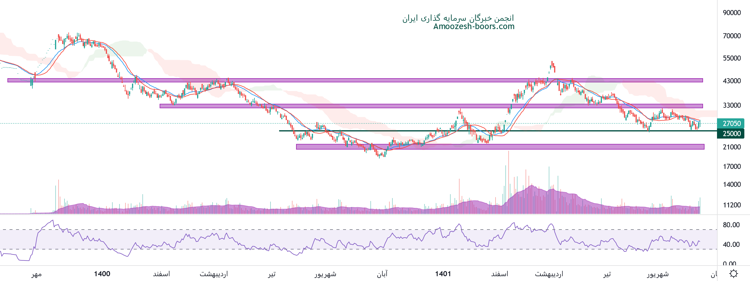 در بررسی نمودار تکنیکال انرژی قیمت سهم مابین محدوده حمایتی 25000 ریال و محدوده مقاومتی 33000 ریال قرار دارد، در صورت از دست رفتن محدوده حمایتی مذکور، حمایت بعدی 20000 ریال خواهد بود، همچنین در صورت عبور از مقاومت، مقاومت بعدی 45000 ریال خواهد بود.