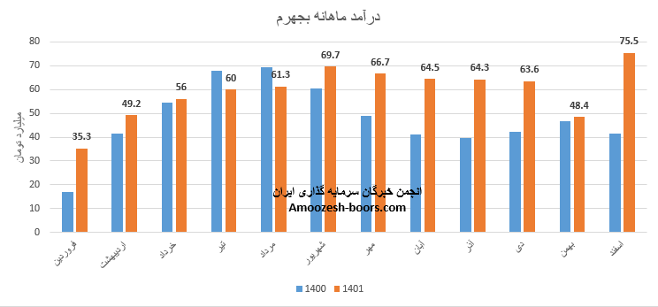 نماد بجهرم ثبت رکورد جدیدی در گزارش ماهانه داشته و درآمد اسفند ماه خود معادل 75.5 میلیارد تومان گزارش نموده که این رقم افزایش 30 درصدی نسبت به متوسط ماهانه دارد، همچنین عملکرد اسفند ماه سهم بجهرم با رشد 56 درصدی نسبت به ماه گذشته و رشد 82 درصدی نسبت به مدت مشابه را دارد، بیشترین درامد نماد بجهرم در اسفند ماه از طریق انرژی الکتریکی تامین گردیده است که نرخ فروش آن نسبت به ماه قبل افت 3% و مقدار فروش 79% بیشتر بوده است، همچنین سهم بجهرم از دریافت مجوز افزایش 32% در نرخ ارائه خدمات خبر داده است.