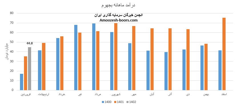 بجهرم با ثبت درآمد 44.8 میلیارد تومانی موفق شده، فروش خود را نسبت به فروردین سال گذشته 27% بهبود دهد، همچنین در مقایسه با ماه گذشته افت 44 درصدی درآمد را داشته که به دلیل افت فروش انرژی الکتریکی به عنوان محصول پر فروش شرکت توسعه مولد نیروگاهی جهرم میباشد، به طوری که مقدار فروش این محصول و میزان تولید آن با کاهش 88 درصدی نسبت به ماه قبل همراه بوده است، باید در نظر داشت نرخ فروش انرژی الکتریکی نسبت به ماه گذشته افزایش خوب 121 درصدی را تجربه نموده.