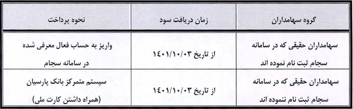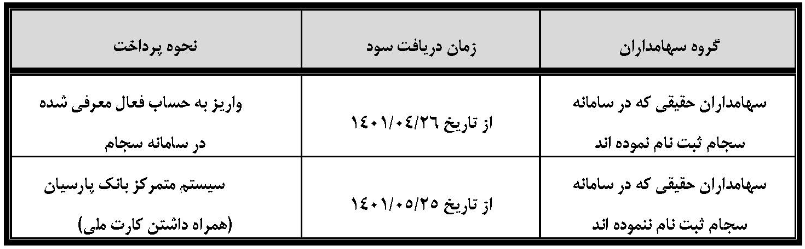 همچنین سود سهام صندوق های سرمایه گذاری و سبدها از تاریخ ۱4۰۱/۰۵/۲۵ با تکمیل و ارسال فرم مشخصات به آدرس ایمیل پایین صفحه مراجعه نمایند و نسبت به واریز سود سهام ایشان اقدام خواهد شد. سود سهامداران حقوقی از تاریخ ۱4۰۱/۱۰/۲۷ با توجه به اطلاعات سهامداری که در اختیار شرکت قرار داده اند ، به حساب ایشان واریز