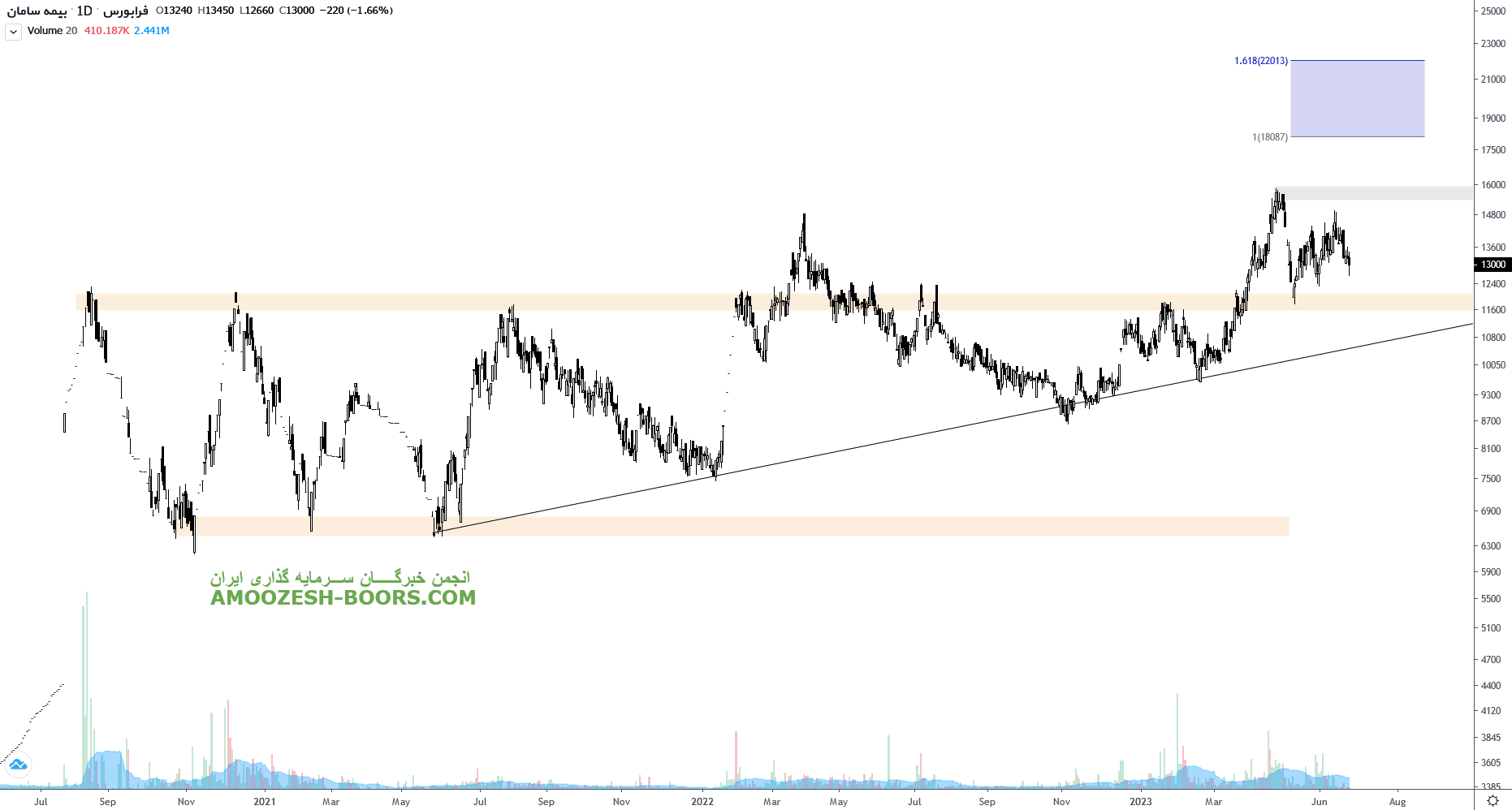 بعد از اصلاحی که روی چارت انجام شده قیمت به محدوده امنی رسیده است، محدوده حمایت بساما محدوده 12000 ریال ارزیابی میگردد، در صورت تثبیت قیمت در این محدوده و ثبت کندل های مثبت، میتوان انتظار حرکت قیمت تا محدوده 15000 ریال را داشت، همچنین در صورت ادامه دار شدن اصلاح و از دست رفتن حمایت نماد بساما که در بالا ذکر شد، حمایت بعدی 11000 ریال خواهد بود.