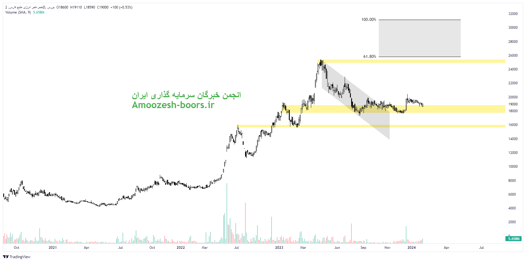 قیمت سهم بفجر بر روی حمایت ناحیه ۱۸۰۰ تومان قرار گرفته است لذا در صورت ایجاد تقاضا در کلیت بازار حرکت صعودی سهم بفجر تا مقاومتهای ناحیه ۲۵۰۰ و ۳۱۰۰ تومان در میان مدت ادامه خواهد داشت. همچنین در صورت عدم ایجاد تقاضا در کلیت بازار و از دست رفتن حمایت ناحیه ۱۸۰۰ تومان، حمایت بعدی سهم بفجر ناحیه ۱۵۰۰ تومان در نظر گرفته خواهد شد.