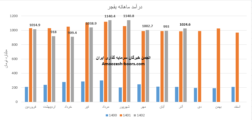 درآمد آبان ماه سال 1402 سهم بفجر 993 میلیارد تومان بوده است که در مقایسه با ماه گذشته 1% افت داشته است.