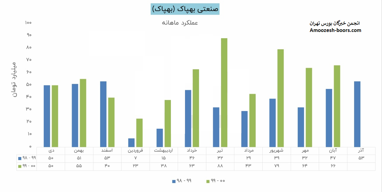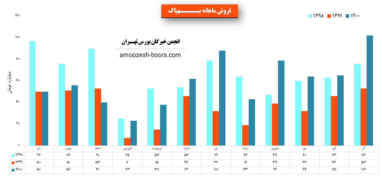 نماد بهپاک در آذر 1400 که آخرین ماه سال مالی خود میباشد، مبلغ 102 میلیارد تومان درامد داشته که این میزان نسبت به ماه گذشته 57% و همچنین نسبت به مدت مشابه سال گذشته 92% رشد پیدا کرده است!