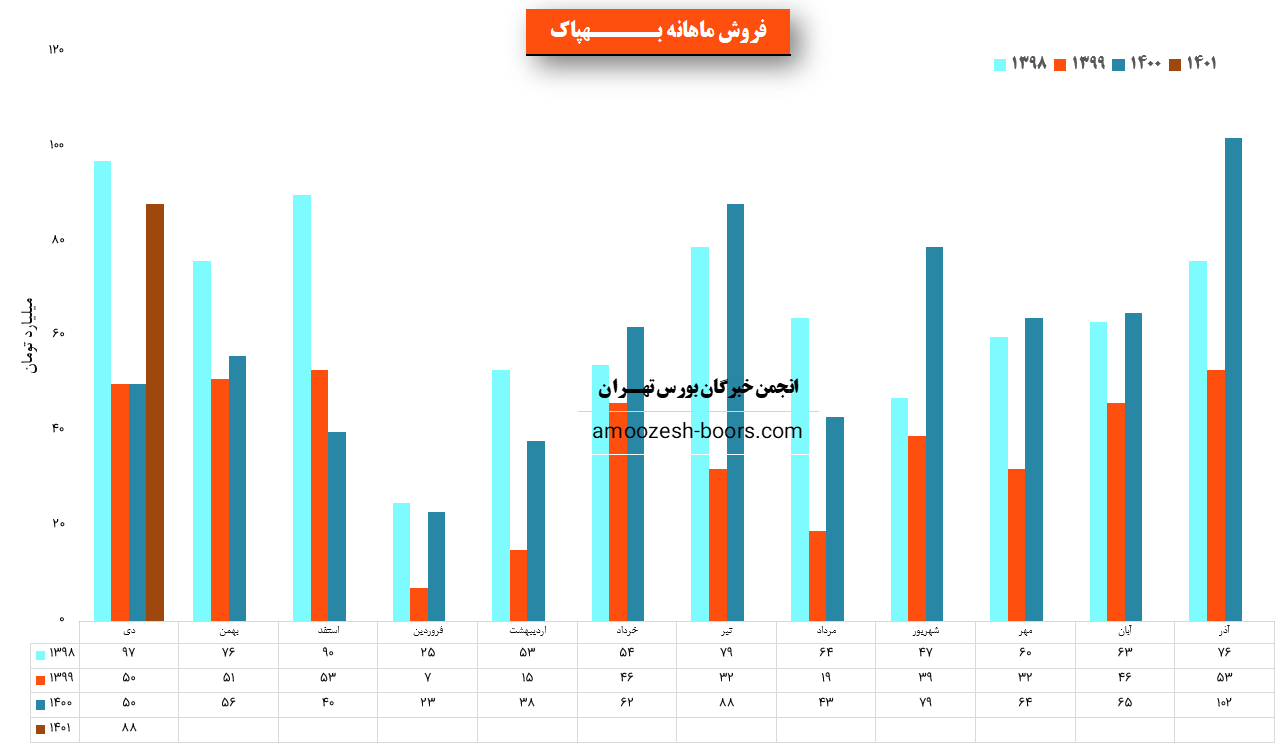 نماد بهپاک در دی ماه 1400 که اولین ماه سال مالی جدید خود میباشد، مبلغ 88 میلیارد تومان درامد داشته که این میزان نسبت به ماه گذشته 14% افت و همچنین نسبت به مدت مشابه سال گذشته 76% رشد پیدا کرده است!