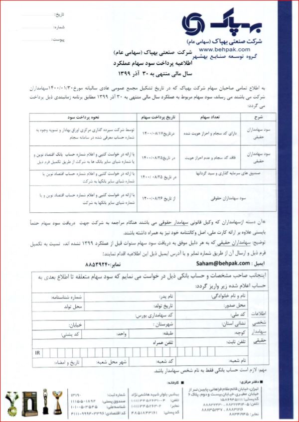 با توجه به انتشار نامه ای توسط نماد بهپاک مبنی بر زمانبندی پرداخت سود سهام به سهمداران شرکت، سود کلیه سهامداران شرکت صنعتی پاکدیس که درسامانه سجام حساب دارند از تاریخ 17 آبان به حسابشان واریز خواهد شد