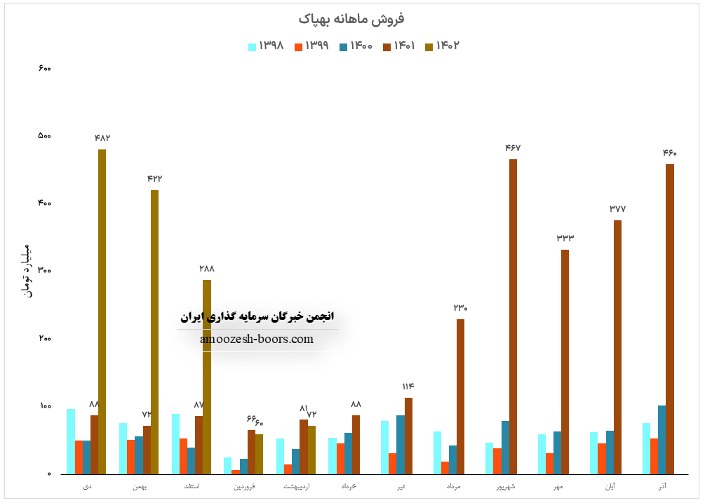 نماد بهپاک (شرکت صنعتی بهپاک) در اردیبهشت ماه سال 1402 حدود مبلغ 72 میلیارد تومان درآمد داشته که این میزان در مقایسه با ماه گذشته 20% رشد و همچنین در مقایسه با مدت مشابه سال گذشته 11% افت پیدا کرده است.