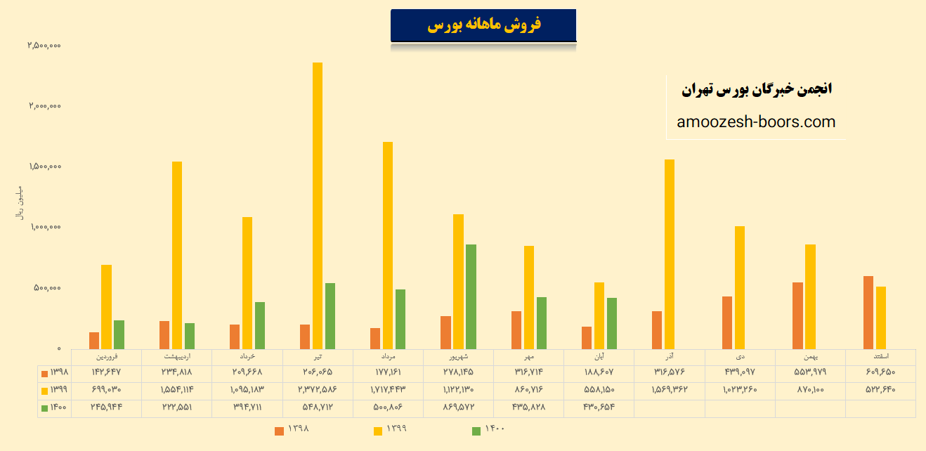 درآمد سازمان بورس اوراق بهادار با نماد بورس در این دوره نسبت به ماه قبل 9% کاهش و نسبت به میانگین ماه های قبل42% افزایش و نسبت به دوره 1 ماهه مشابه سال قبل 71% کاهش درآمد داشته است.