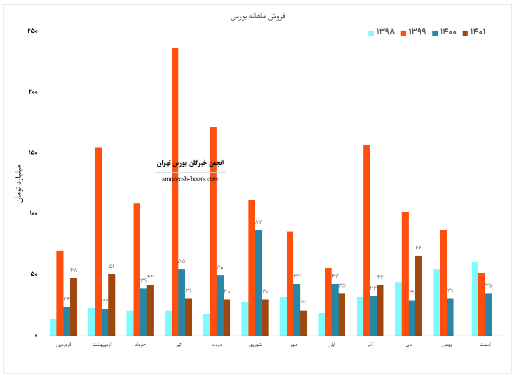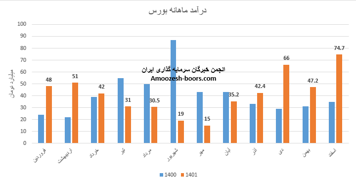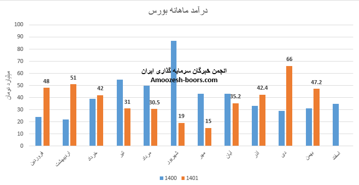 سهم بورس (بورس اوراق بهادار تهران) در دی ماه سال 1401 حدود مبلغ 66 میلیارد تومان درامد داشته که این میزان نسبت به ماه گذشته 57 درصد و همچنین نسبت به مدت مشابه سال گذشته 128 درصد رشد درامد پیدا کرده است!