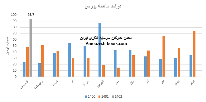 سازمان بورس اوراق بهادار تهران با شناسایی درآمد 93.7 میلیارد تومانی موفق به شکست رکورد در 3 سال گزارشات ماهانه خود گردیده است، به طوری که نسبت به ماه قبل 25% و نسبت به مدت مشابه 95% بیشتر میباشد، درآمد حاصل از کارمزد معاملات افزایش 29 درصدی داشته است.