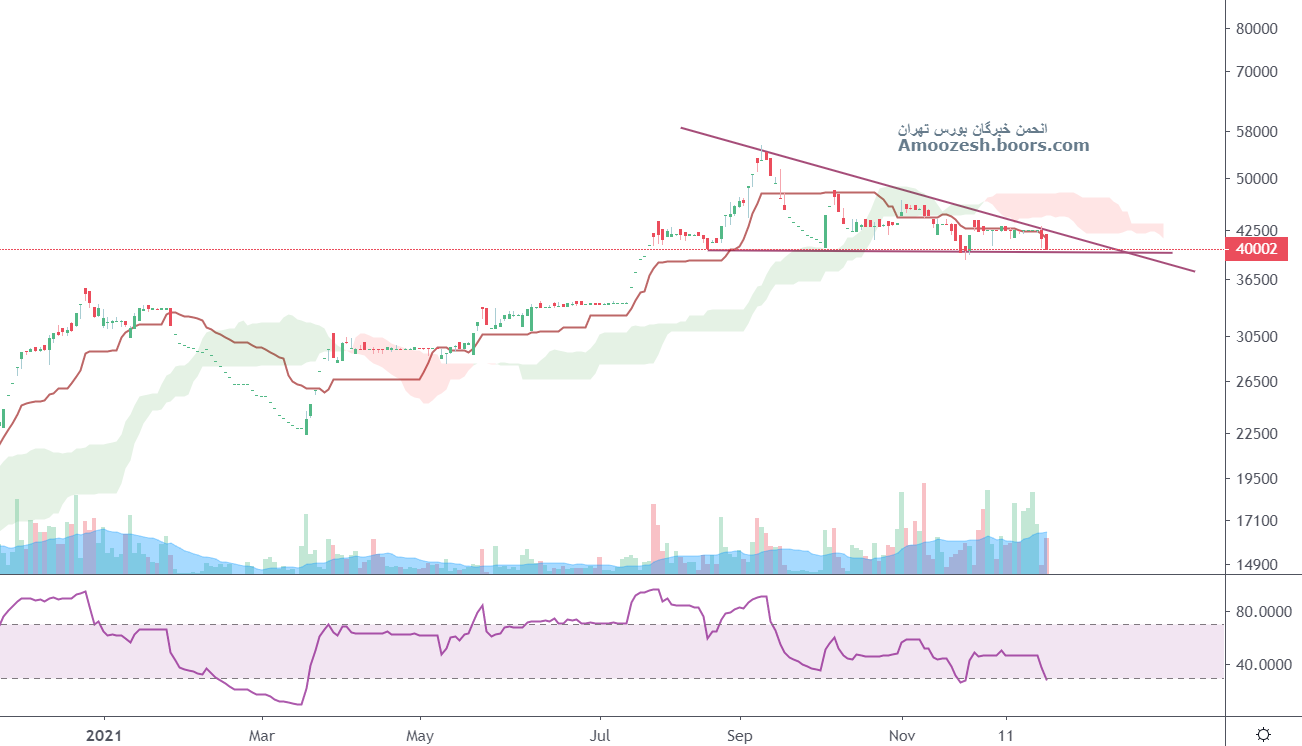 سهم در حال حاضر در محدوده حمایت مقاومتی محصور شده در صورت از بین رفتن محدوده 40000 ریال حدضرر فعال خواهد شد همچنین در صورت تثبیت مقاومت پراتراکم 43000 تا تارگت ثله تاریخی 55000 بر سر راه سهم قرار دارد .