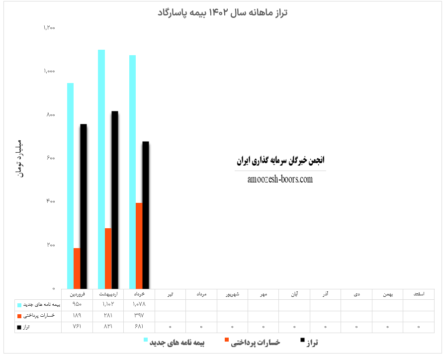 درآمد عملیاتی بیمه پاسارگاد در گزارش فروردین ماه سال 1402 برابر با 950 میلیارد تومان بوده است، همچنین خسارات پرداختی نماد بپاس برابر 189.3 میلیارد تومان میباشد، لذا تراز درخشان 402 درصدی عملکرد عالیی برای سهم بپاس ارزیابی میشود.