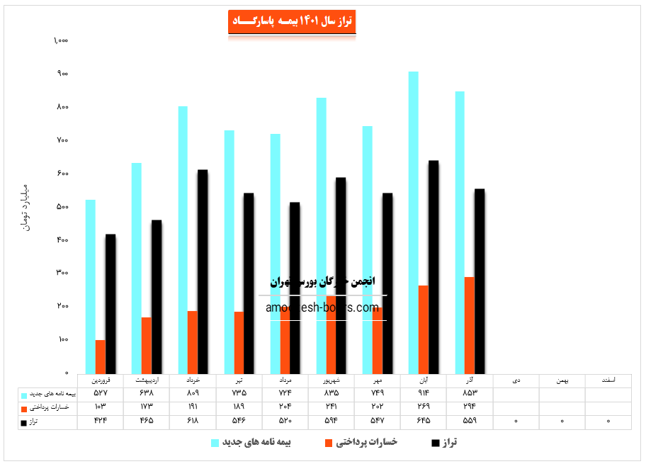 شرکت بیمه پاسارگاد با نماد بپاس در دی ماه درآمدی معادل 848.1 تومان از محل بیمه نامه جدید را ثبت نموده است و از محل خسارات پرداختی نیز 276.8 میلیارد تومان پرداختی داشته، تراز بیمه پاسارگاد در دی ماه مثبت 206% گزارش شده که نسبت مطلوبی استو از ابتدای سال مالی نیز درآمد سهم بپاس رشد 37 درصدی نسبت به مدت مشابه داشته است.