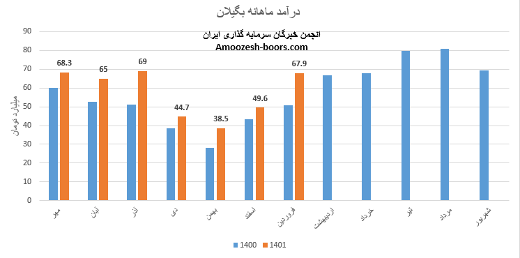 سال مالی شرکت توسعه مسیر برق گیلان نسبت به هم گروهیان متفاوت بوده و منتهی به شهریور ماه میباشد، نماد بگیلان در فروردین ماه سال 1402 طی عملکرد یک ماهه درآمد 67.9 میلیارد تومانی را شناسایی نموده که در مقایسه با ماه قبل 37%، در مقایسه با متوسط ماهانه 22% و نسبت به مدت مشابه 33% بهتر عمل نموده.