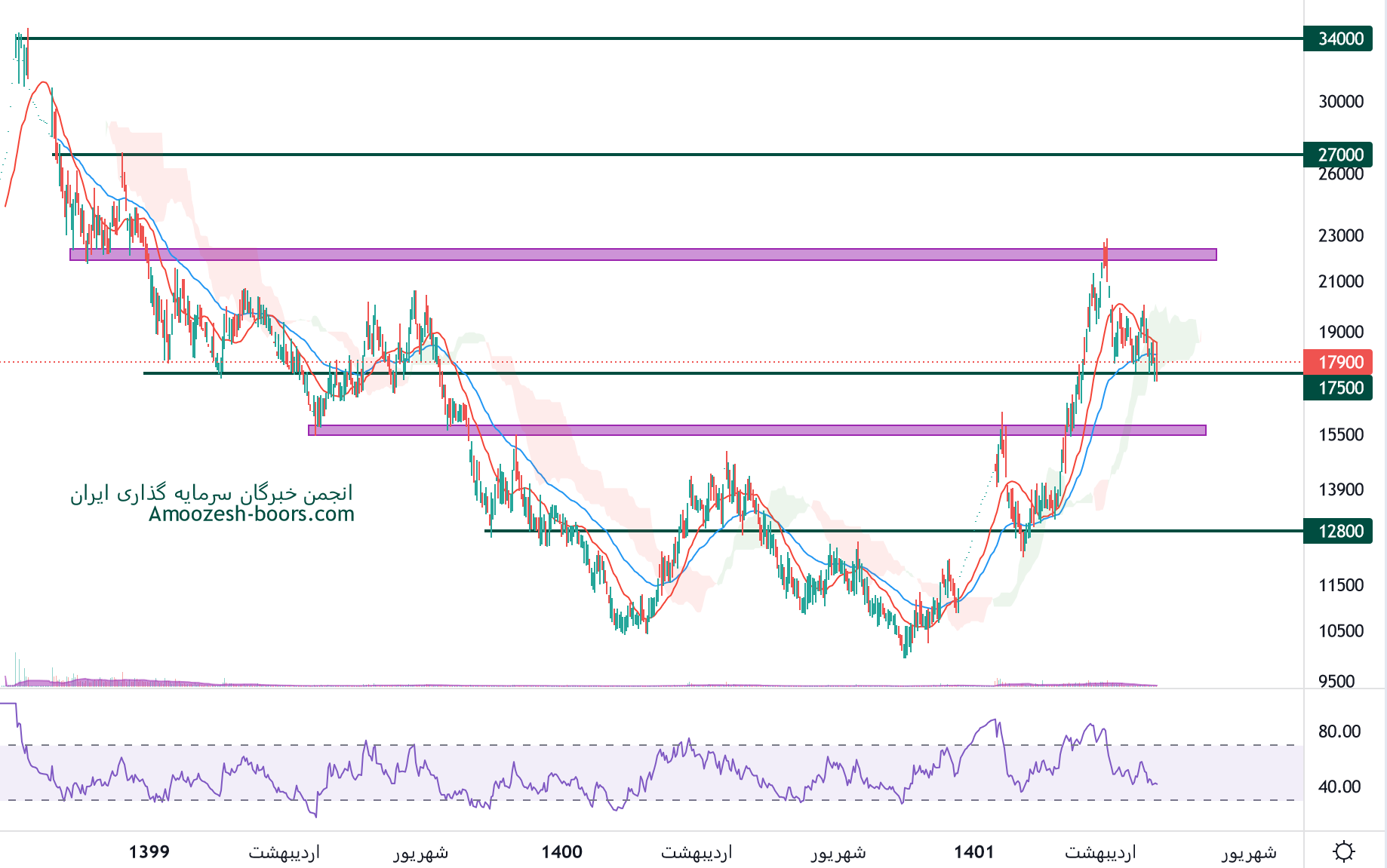 نماد بگیلان در حال حاضر به سطح حمایتی 17500 ریال رسیده، در صورت تثبیت قیمت بگیلان روی این حمایت، تارگت های سهم به ترتیب 22000 و 27000 ریال ارزیابی میگردند، همچنین در صورت از دست رفتن سطح حمایتی مذکور، حمایت بعدی سهم بگیلان 15500 ریال در نظر گرفته خواهد شد.