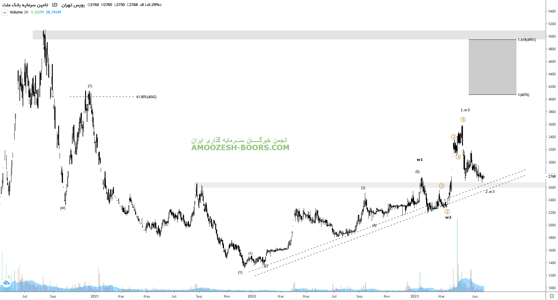 قیمت سهم تملت بر روی حمایت ناحیه 260 تومان قرار گرفته است. در صورت حفظ این ناحیه و ایجاد تقاضا در کلیت بازار، سهم تملت توانایی رشد تا مقاومت ناحیه ۴۱۰ تومان و در صورت شکست مقاومت ناحیه ۵۰۰ تومان را دارد. در صورت از دست رفتن حمایت ناحیه ۲۶۰ تومان حمایت بعدی سهم تملت ناحیه ۲۲۵ تومان می باشد.