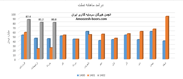 نماد تملت (تامين سرمايه بانك ملت) در اردیبهشت ماه سال 1402 حدود مبلغ 81 میلیارد تومان درآمد داشته که این میزان در مقایسه با ماه گذشته 7% کاهش و همچنین در مقایسه با مدت مشابه سال گذشته 252% رشد پیدا کرده است.