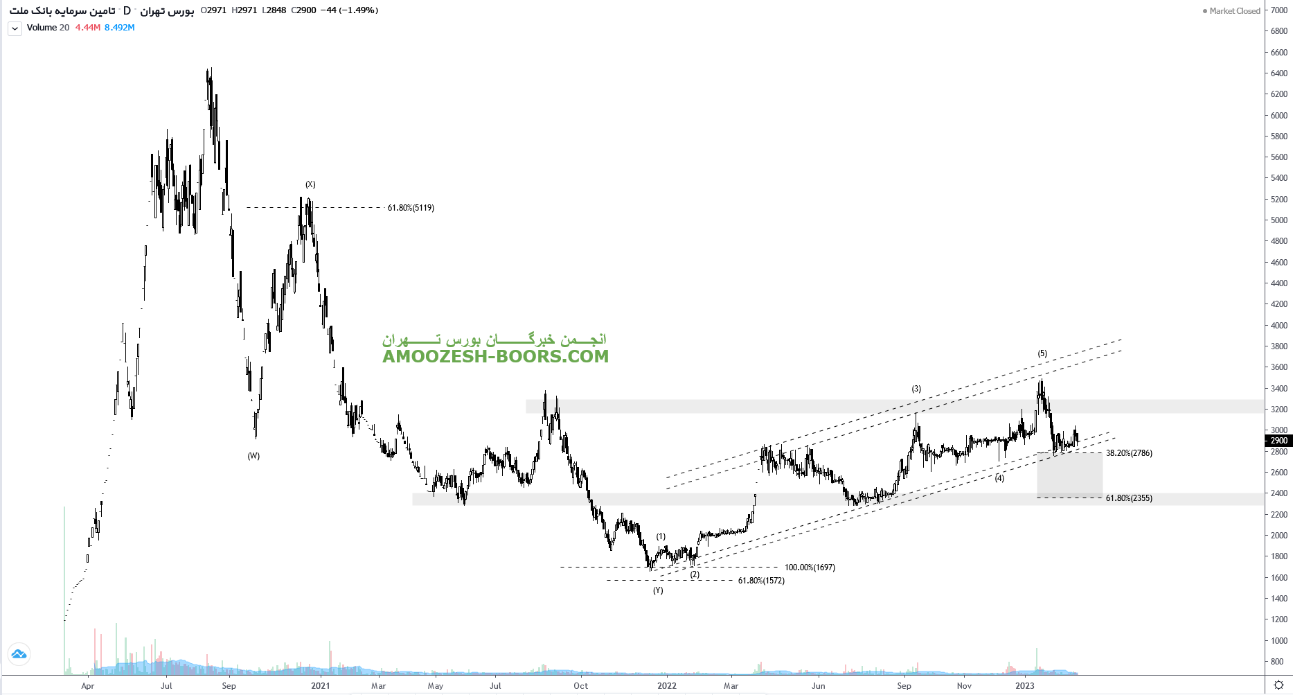 قیمت سهم تملت در قالب یک کانال صعودی در حال رشد می باشد لذا در صورت حفظ حمایت کف کانال مقاومت بعدی سهم تملت ناحیه سقف کانال یعنی ناحیه ۳۸۰ تومان تعیین شده است. همچنین در صورت از دست رفتن این ناحیه حمایتی حمایت بعدی و مهم سهم تملت ناحیه ۲۳۵ تومان تعیین شده است.
