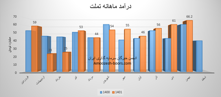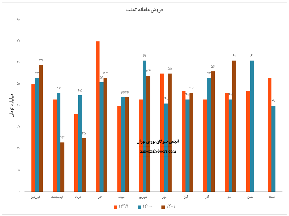 نماد تملت (تامين سرمايه بانك ملت) در دی ماه 1401 حدود مبلغ 61 میلیارد تومان درآمد داشته که این میزان در مقایسه با ماه گذشته 9% و همچنین در مقایسه با مدت مشابه سال گذشته 42% رشد پیدا کرده است.