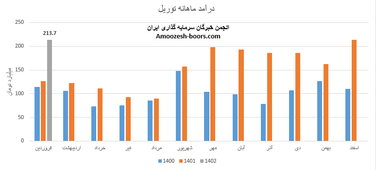 نماد توریل در عملکرد 1 ماهه 270.5 میلیارد تومان به دست اورده که علاوه بر ثبت رکورد جدید رشد 191 درصدی نسبت به مدت مشابه داشته است، فروش سهم توریل نسبت به ماه گذشته 38% و نسبت به متوسط ماهانه 32% رشد داشته است.
