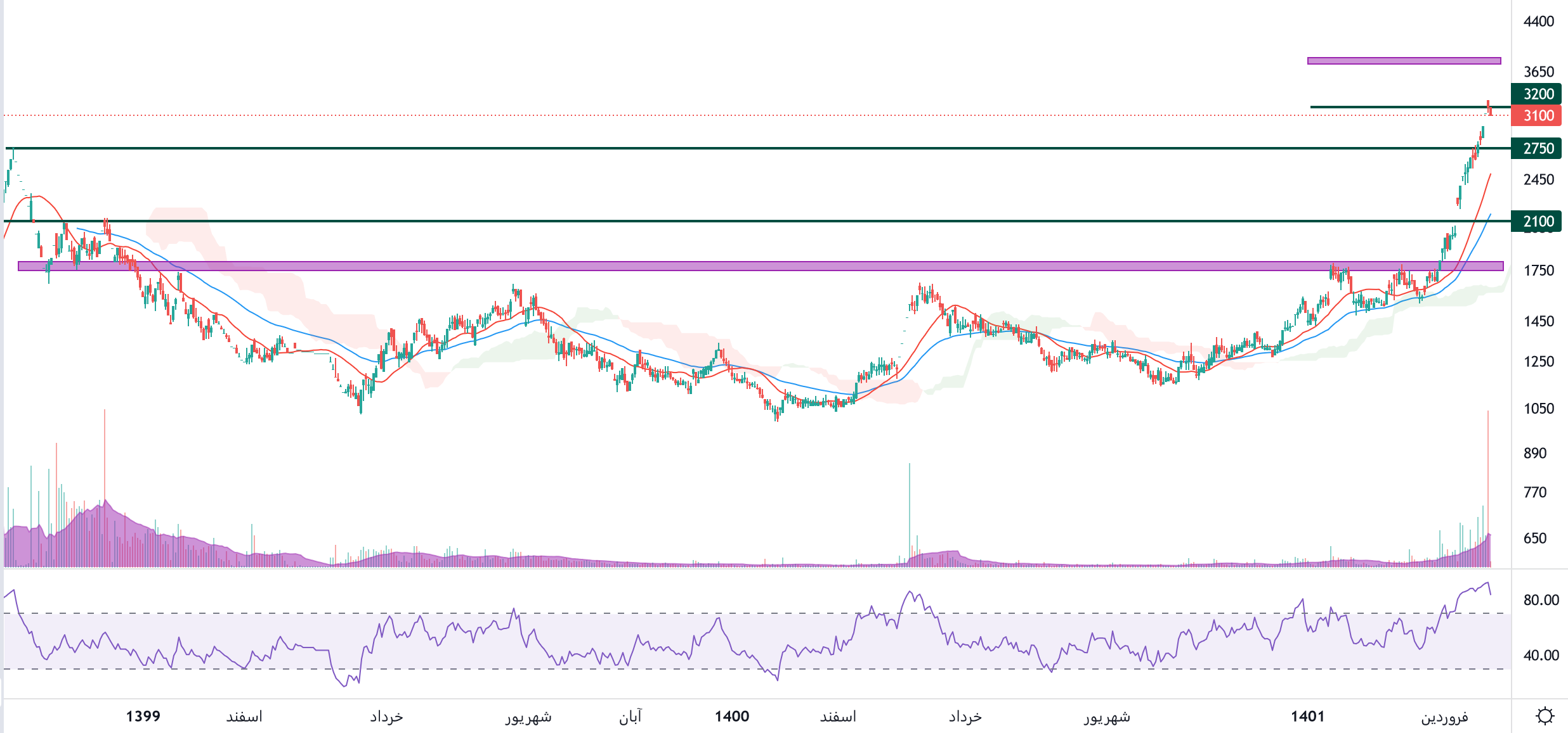نماد ثامید به سطح مقاومتی 3200 ریال واکنش منفی نشان داده، با توجه به رشد خوبی که سهم ثامید در روز های اخیر تجربه کرده پر ریسک ارزیابی میگردد و پیشنهاد به جایگزینی این نماد میشود، اولین حمایت سهم 2750 ریال در نظر گرفته خواهد شد، همچنین در صورت عبور قیمت از سطح مقاومتی ذکر شده، محدوده مقاومت بعدی 3800 ریال خواهد بود.