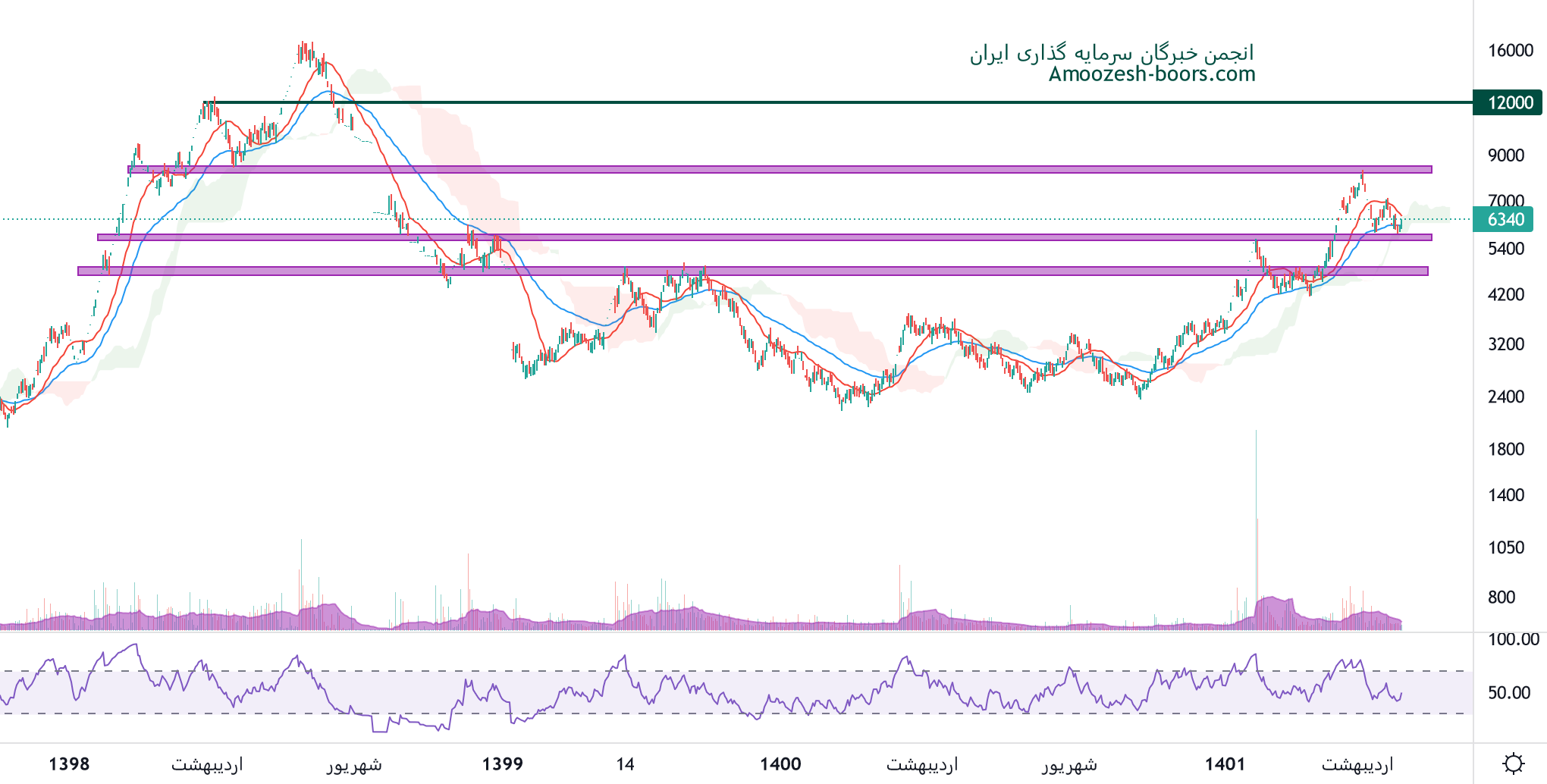 نماد ثتران در محدوده حمایتی 6000 ریال قرار دارد، این ناحیه برای سهم ثتران کم ریسک محسوب میگردد، در صورت تثبیت قیمت در این محدوده، 8000 و 12000 ریال تارگت های سهم محسوب میگردند، همچنین در صورت از دست رفتن این محدوده حمایتی 5000 ریال حمایت بعدی سهم ثتران خواهد بود.