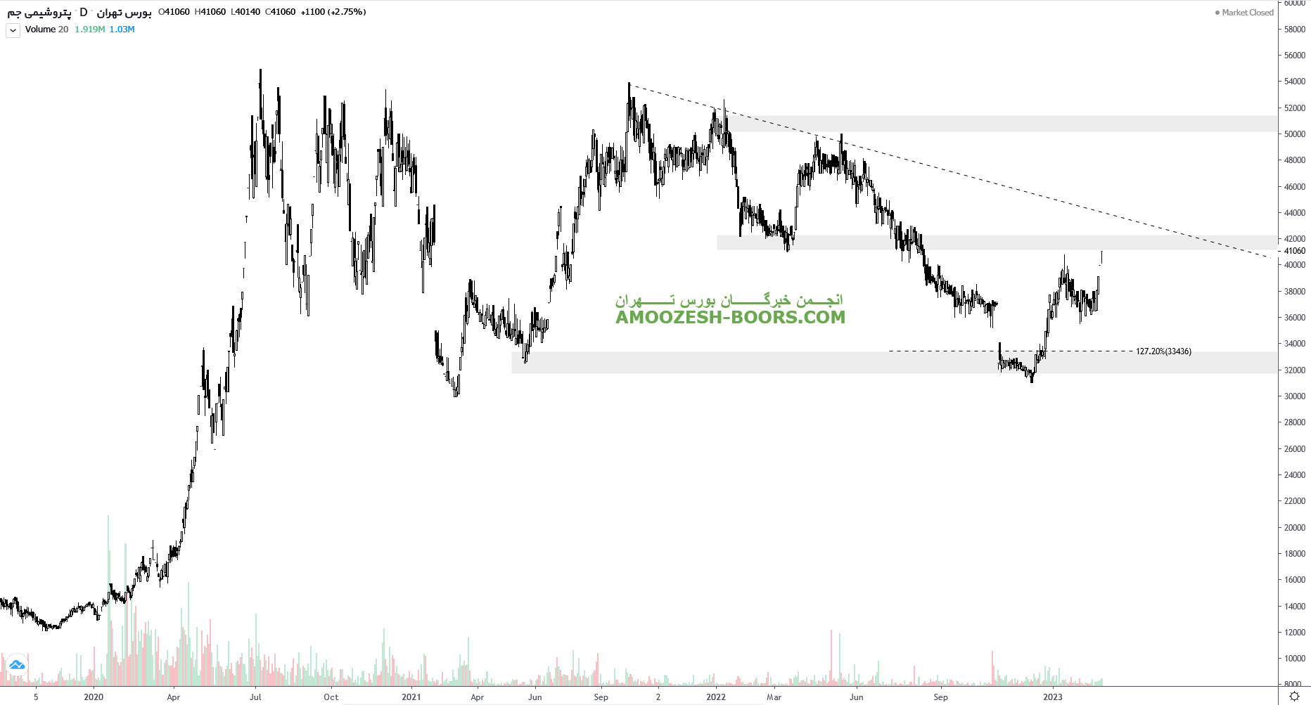 اولین مقاومت سهم جم ناحیه ۴۲۰۰ تومان در نظر گرفته شده است که در صورت شکست میتواند رشد خود را تا مقاومت بعدی خود یعنی ناحیه 5000 تومان ادامه دهد اما در صورت بروز واکنش منفی نسبت به مقاومت ناحیه ۴,۲۰۰ تومان اولین حمایت سهم جم حمایت مینور ناحیه 3600 تومان تعیین شده است.