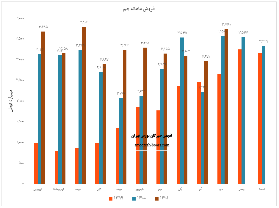 درآمد بهمن ماه 1401 نماد جم در مقایسه با متوسط ماهانه افزایش 13 درصدی و نسبت به مدت مشابه افزایش 5 درصدی را تجربه نموده است .