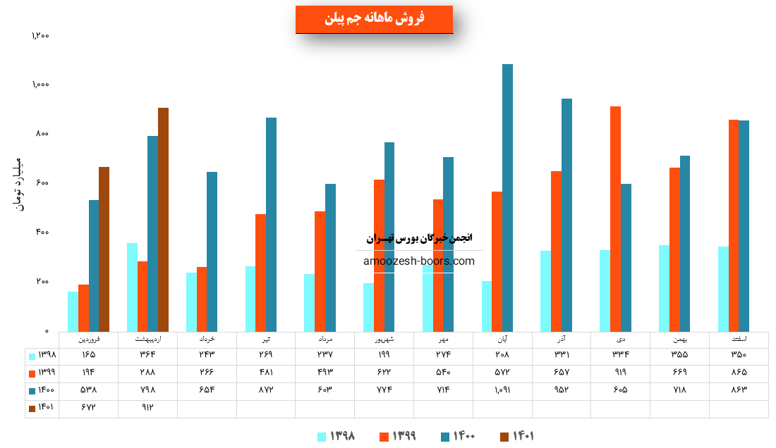 سهم جمپیلن در اردیبهشت ماه حدود 22 هزار و 500 تن از محصولات خود را به فروش رساند که این میزان در مقایسه با حجم فروش ماه گذشته حدود 23% افزایش پیدا کرده است.